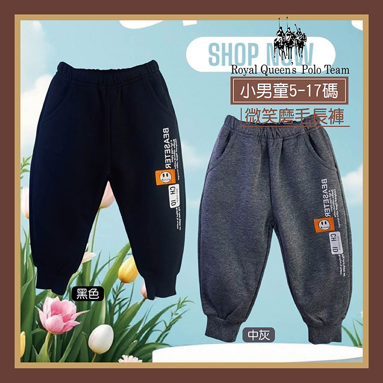 磨毛*小男童 微笑布標棉長褲 5-17碼 [51405] R.Q. POLO 小童 秋冬童裝 休閒褲 鬆緊褲頭 鋪棉刷毛