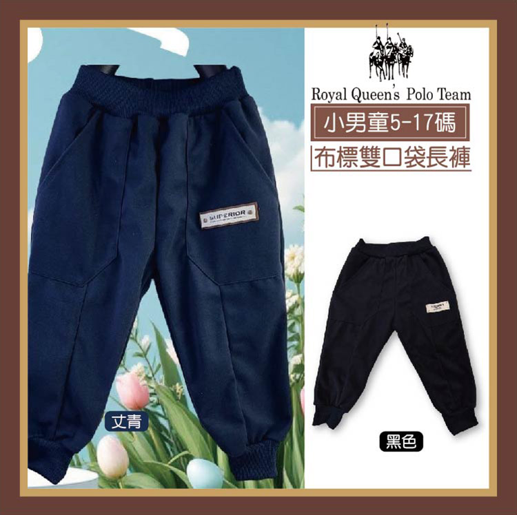 小男童 布標休閒長褲 雙口袋 運動長褲 棉長褲高質感 [52173] R.Q. POLO 小童 秋冬童裝 5-17碼