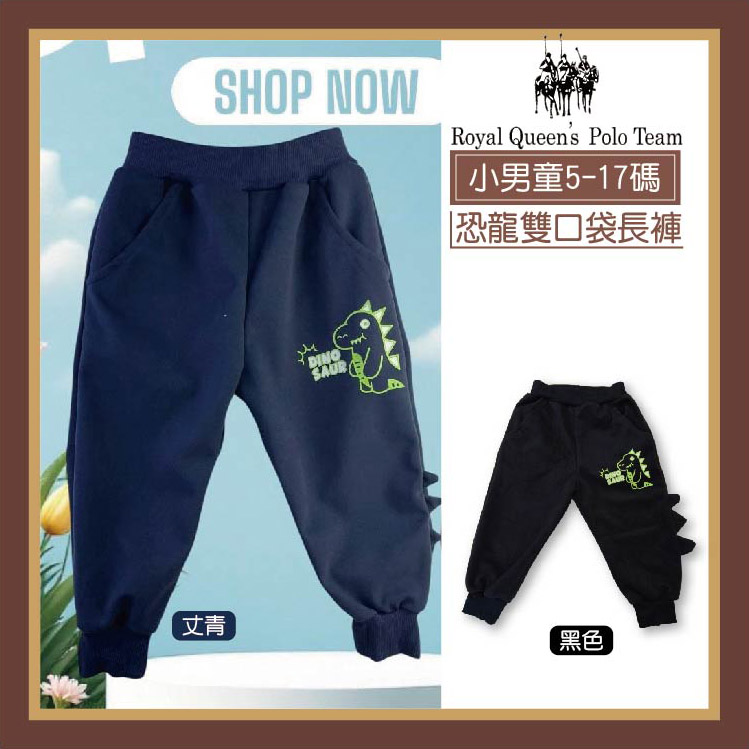 小男童 恐龍印刷休閒長褲 雙口袋 運動長褲 棉長褲高質感 [52177] R.Q. POLO 小童 秋冬童裝 5-17碼