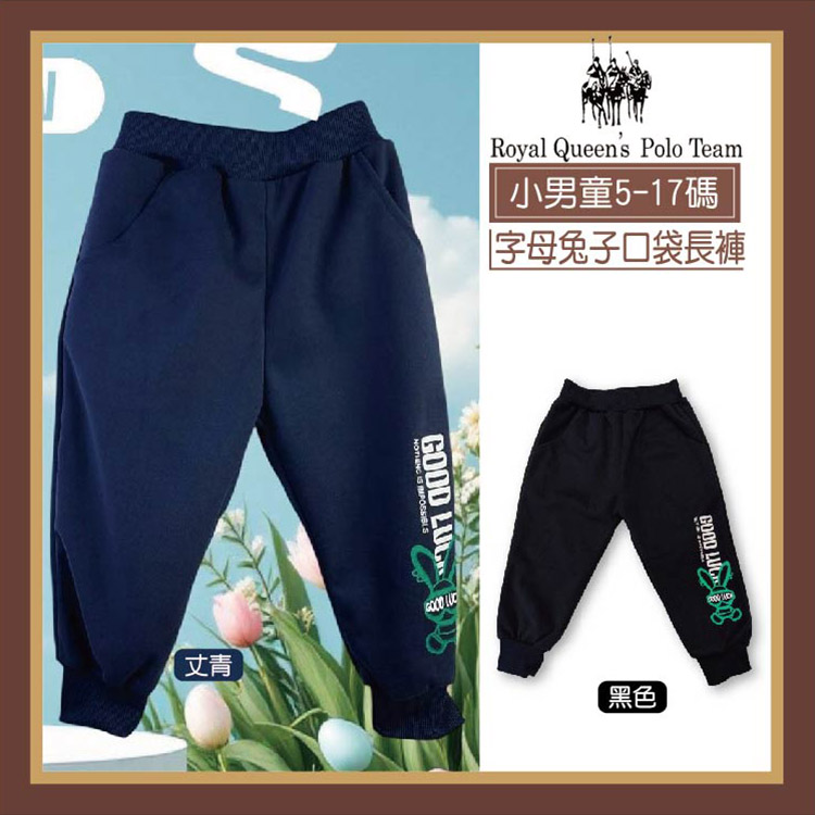 小男童 字母兔子休閒長褲 雙口袋 運動長褲 棉長褲高質感[52179]R.Q. POLO 小童 秋冬童裝 5-17碼兔兔