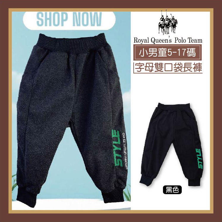 小男童 字母印刷休閒長褲 雙口袋 運動長褲 棉長褲高質感 [52181] R.Q. POLO 小童 秋冬童裝 5-17碼