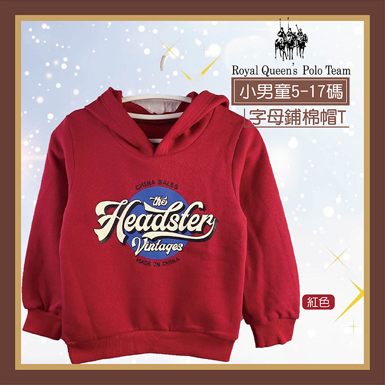 鋪棉*韓版兒童秋冬長袖 字母連帽T恤 5-17碼 [51937] RQ POLO 秋冬童裝 聖誕 耶誕服飾 小男童 帽T - 紅色, 131 × NT$148