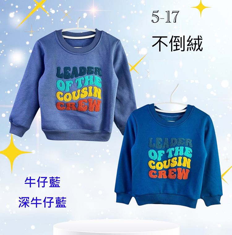 刷毛*小男童 字母毛線上衣 T恤 [52319] R.Q. POLO 小童 秋冬童裝 5-17碼 保暖 百搭熱銷款 - 深牛仔藍, 151 × NT$148