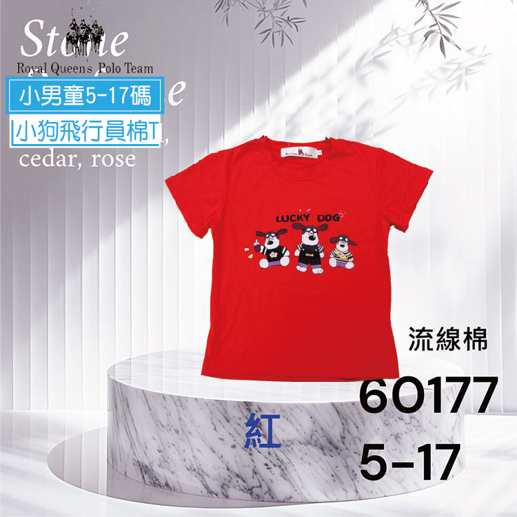 小男童 小狗飛行員短袖上衣 圓領T恤 5-17碼 [60177] RQ POLO 小童 春夏童裝 韓版 動物 狗狗 大紅
