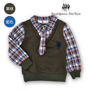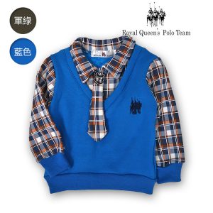RQ POLO 小男童秋冬款純色拼接格紋假兩件式刷毛棉T(附領帶)*2色[8139-8]