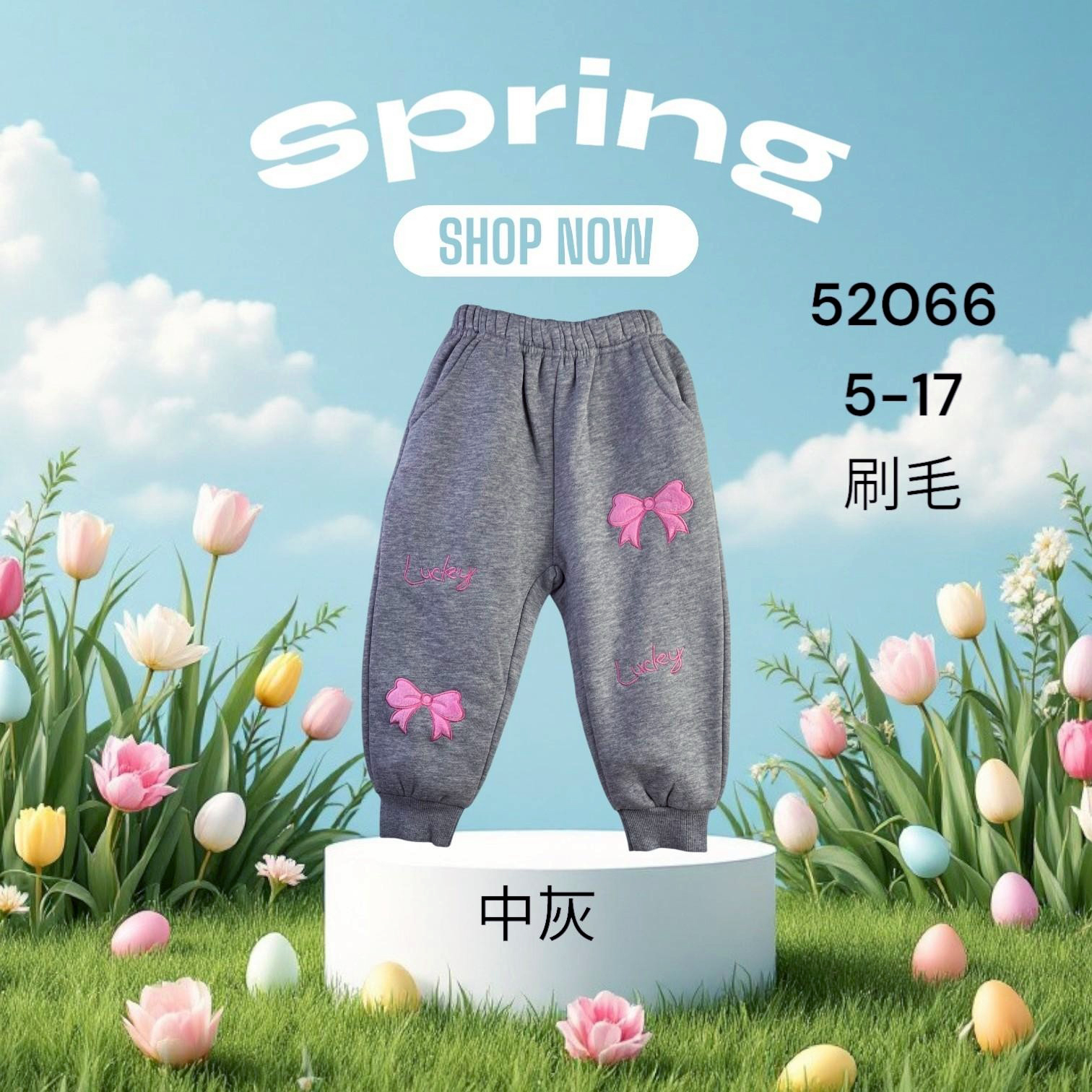 磨毛*小女童 蝴蝶結刺繡棉長褲 5-17碼 [52066] R.Q. POLO 小童 秋冬童裝 休閒褲 鬆緊褲頭鋪棉刷毛