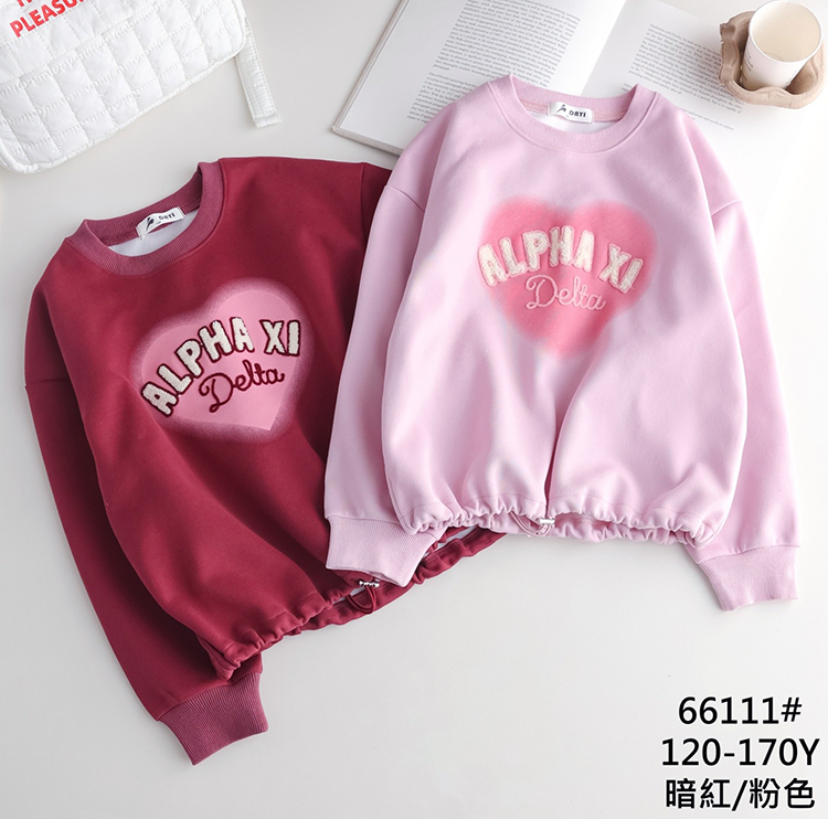 中大女童 愛心字母長袖棉T 暗紅 120-160碼 [66111] RQ POLO 秋冬童裝 上衣 縮口圓領T恤 聖誕