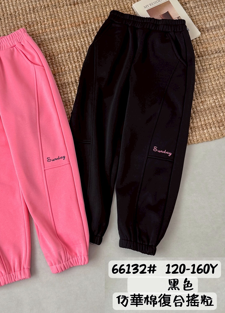 中大女童 縮口刷毛運動棉褲 黑色 120-160碼 [66132] 雙口袋運動褲 長褲 RQ POLO 秋冬童裝 搖粒絨