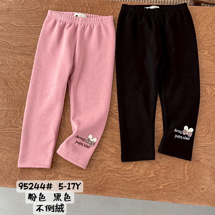 刷毛*小女童長褲 刺繡蝴蝶結刷毛內搭褲 [95237] R.Q. POLO 秋冬童裝 小童 5-17碼 保暖款 熱銷