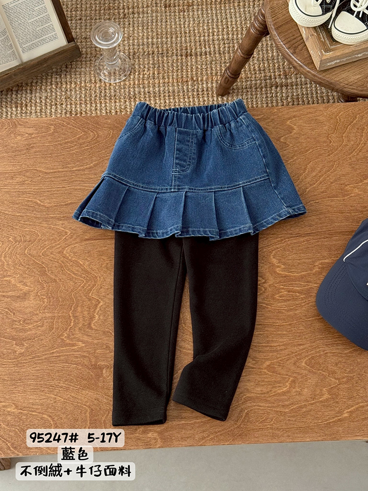 刷毛*小女童 牛仔褲裙內搭褲 藍色 5-17碼 [95247-1] RQ POLO 秋冬童裝 兒童 小童 長褲 保暖寒流