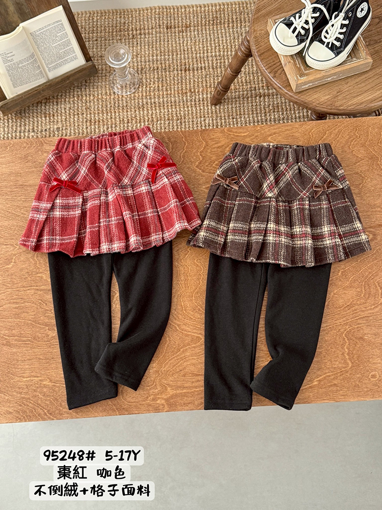 刷毛*小女童 學院風格紋褲裙內搭褲 棗紅 5-17碼 [95248] RQ POLO 秋冬童裝 小童 長褲 聖誕 過年