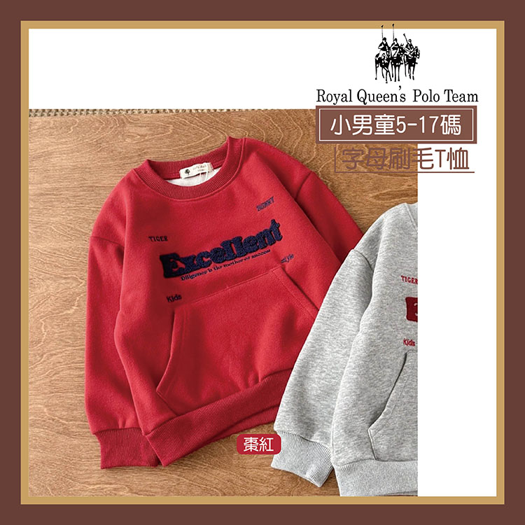 刷毛*小男童 字母帥氣上衣 T恤【棗紅】搖粒絨 [95268] R.Q. POLO 小童秋冬童裝 5-17碼 聖誕 保暖 過年