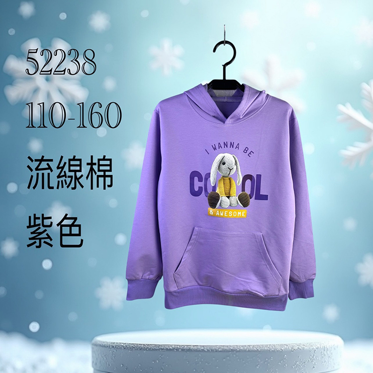 中大女童 字母兔兔口袋縮口帽T【紫色】110-160碼 [52238] RQ POLO 秋冬童裝 連帽 上衣 棉T