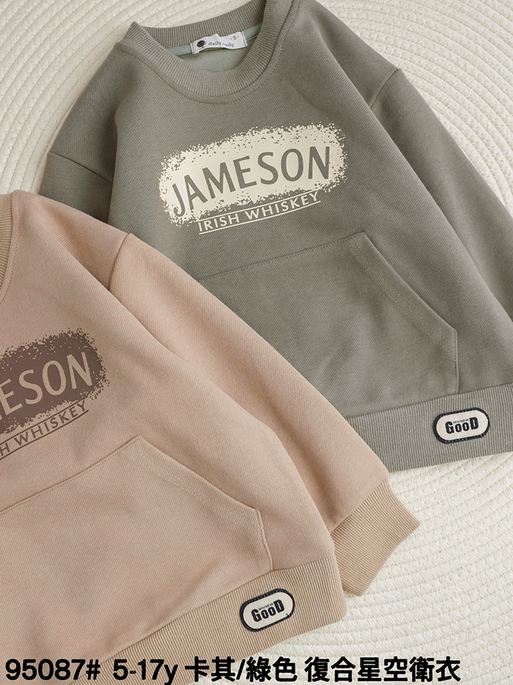 小男童 字母塗鴉口袋上衣 T恤【綠色】5-17碼 [95087] R.Q. POLO 小童 秋冬童裝 韓版 聖誕 耶誕