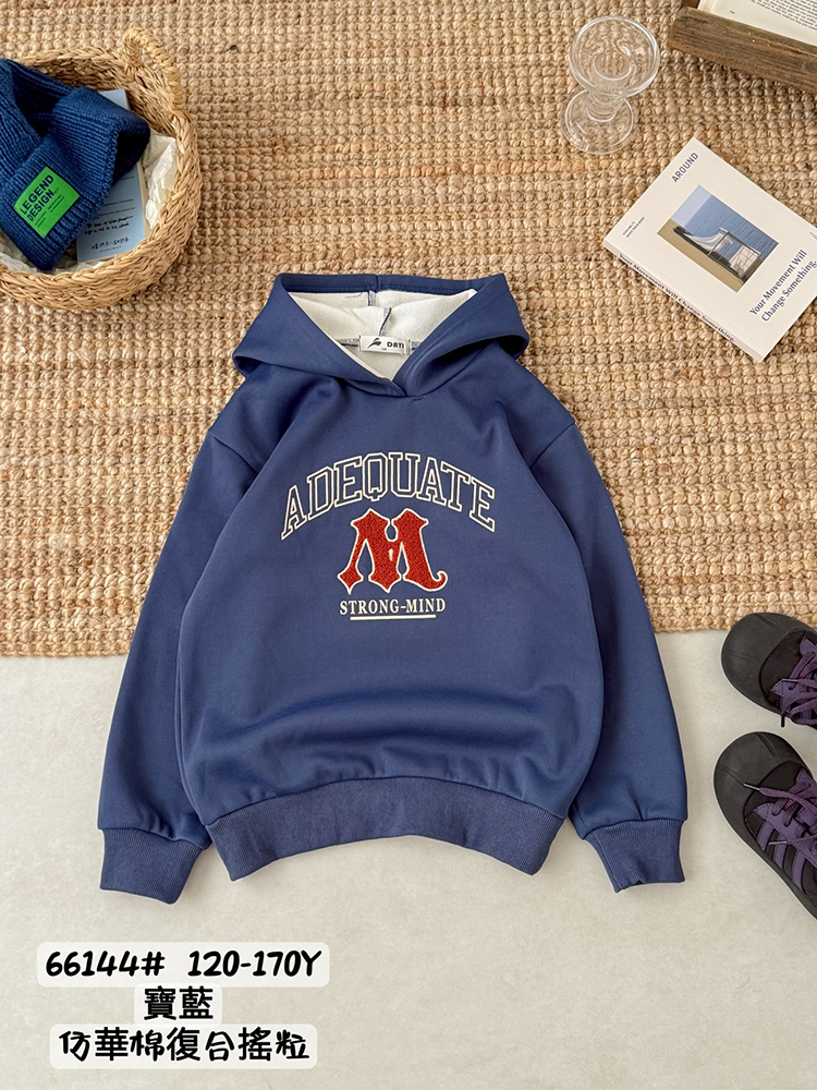 刷毛*中大男童 印刷毛線字母刷毛連帽T恤【寶藍色】[66144] RQ POLO 秋冬童裝 中大童 120-170碼 搖粒絨帽T