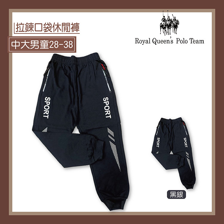 中大男童 縮口運動長褲 拉鍊口袋 黑銀 28-38碼 [2672] RQ POLO 秋冬童裝 現貨 薄長褲 毛料