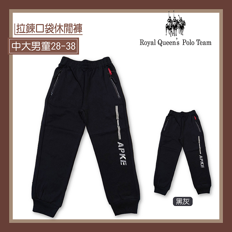 中大男童 縮口運動長褲 拉鍊口袋 黑灰 28-38碼 [2675] RQ POLO 秋冬童裝 現貨 薄長褲 毛料