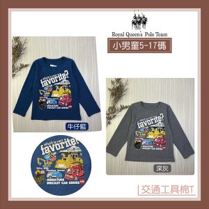 小男童 交通工具圖案 長袖T恤 圓領 [31827] RQ POLO 小童 德絨 秋冬童裝 5-17碼