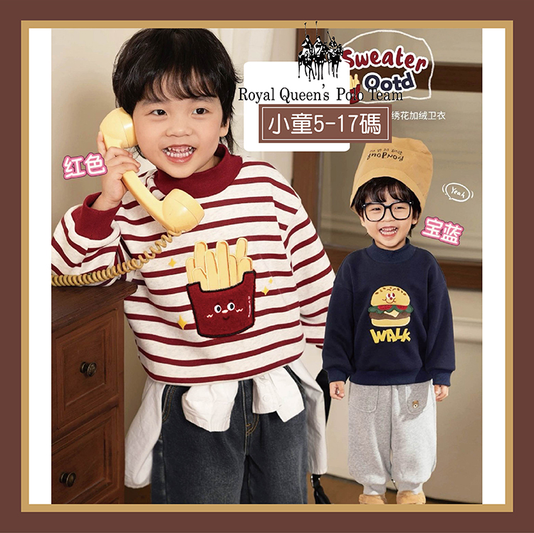 小童 薄款 薯條/漢堡上衣 5-17碼 [D62386]RQ POLO 小男童 小女童 秋冬童裝 長袖T恤 秋季熱銷 - 藍色漢堡, 131 × NT$99