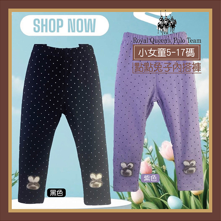 小女童長褲 內搭褲 點點兔兔圖案 [52253] R.Q. POLO 秋冬童裝 小童 5-17碼 輕磨毛 小兔子 休閒褲