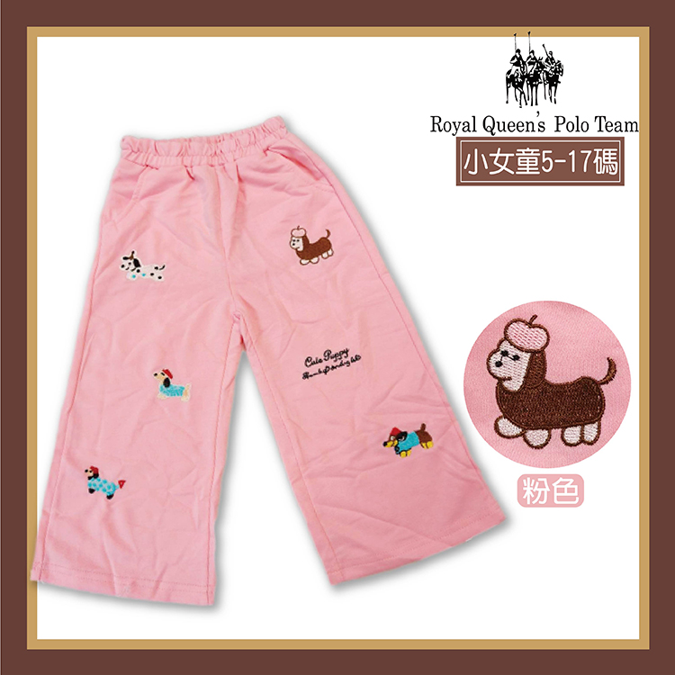 小女童 狗狗刺繡圖案 休閒長褲 運動長褲 [D62522] R.Q. POLO 秋冬童裝 5-17碼 小童 寬鬆 小狗