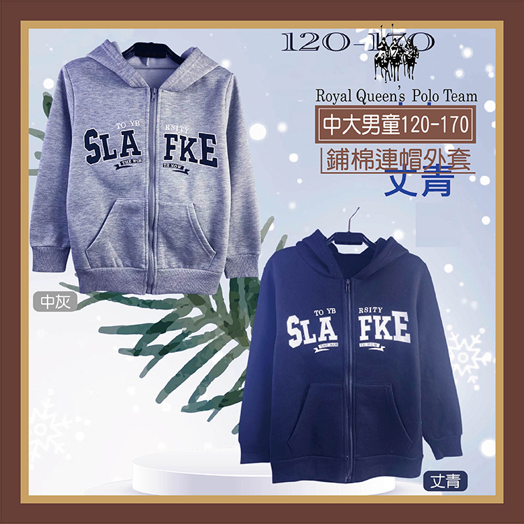 中大男童 鋪棉棉質外套 連帽外套運動外套[52360]RQ POLO 中大童 120-170碼秋冬早晚添加保暖遮陽防蚊