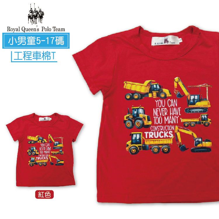 小男童 工程車短袖圓領T恤 5-17碼 [60006] RQ POLO 小童 春夏童裝 短袖上衣 交通工具 挖土機