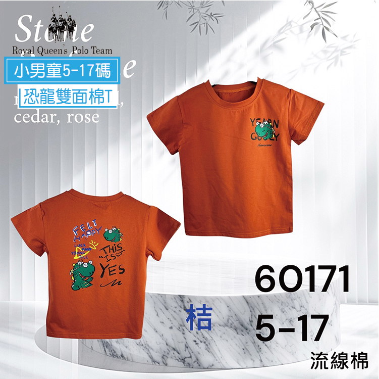 小男童 雙面恐龍短袖圓領T恤 5-17碼 [60171] RQ POLO 小童 春夏童裝 短袖上衣 暴龍 霸王龍