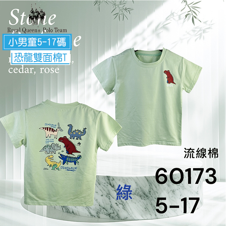 小男童 雙面恐龍短袖圓領T恤 5-17碼 [60173] RQ POLO 小童 春夏童裝 短袖上衣 三角龍 暴龍 霸王龍 滄龍 劍龍