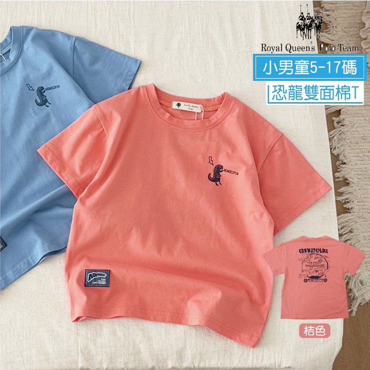 小男童 雙面恐龍短袖圓領T恤 5-17碼 [95329] RQ POLO 小童 春夏童裝 短袖上衣 三角龍 暴龍 霸王龍