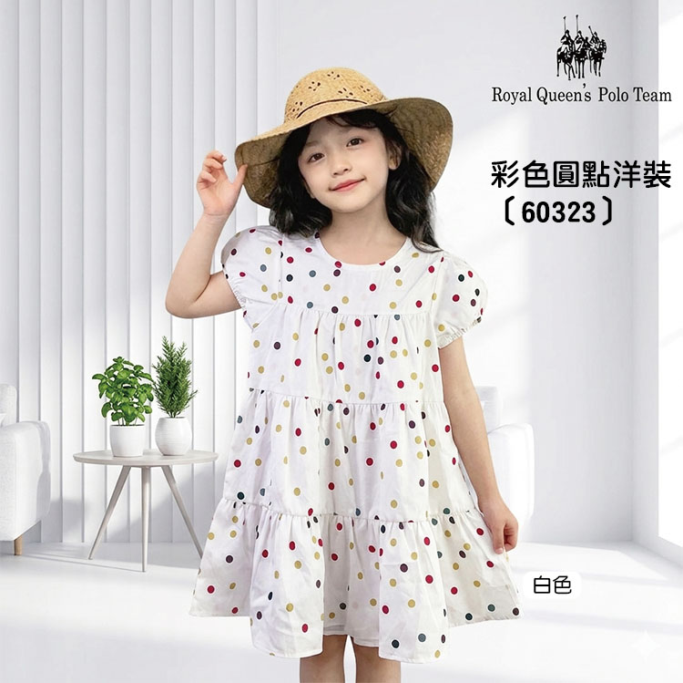 小女童 彩色圓點白色洋裝 長洋裝 5-17碼 [60323] RQ POLO 小童 春夏童裝 小洋裝波點洋裝 波爾卡圓點