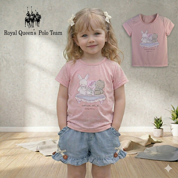 小女童 涼感速乾網眼冰絲 兔兔小熊短袖上衣圓領T恤 5-17碼 [60408] RQ POLO 小童春夏童裝 短袖上衣