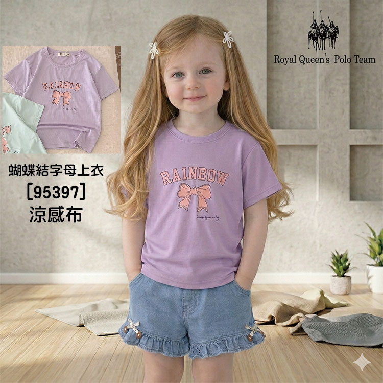 小女童 涼感速乾網眼冰絲 閃亮蝴蝶結短袖上衣圓領T恤 5-17碼 [95397] RQ POLO 小童春夏童裝 短袖上衣