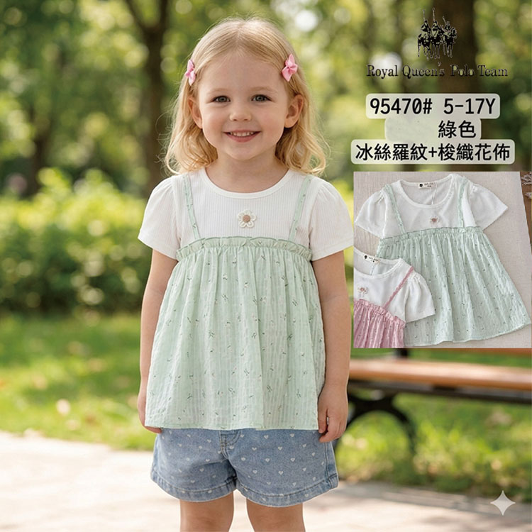 小女童 小清新假兩件 短洋上衣 5-17碼 [95470] RQ POLO 小童 春夏童裝 布料柔軟 內搭褲 短洋裝 小葉子