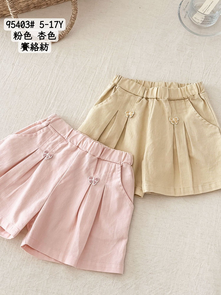 小女童 可愛蝴蝶結雙口袋鬆緊梭織短褲 休閒褲【杏色】5-17碼 [95403] RQ POLO 春夏童裝 現貨 平織褲