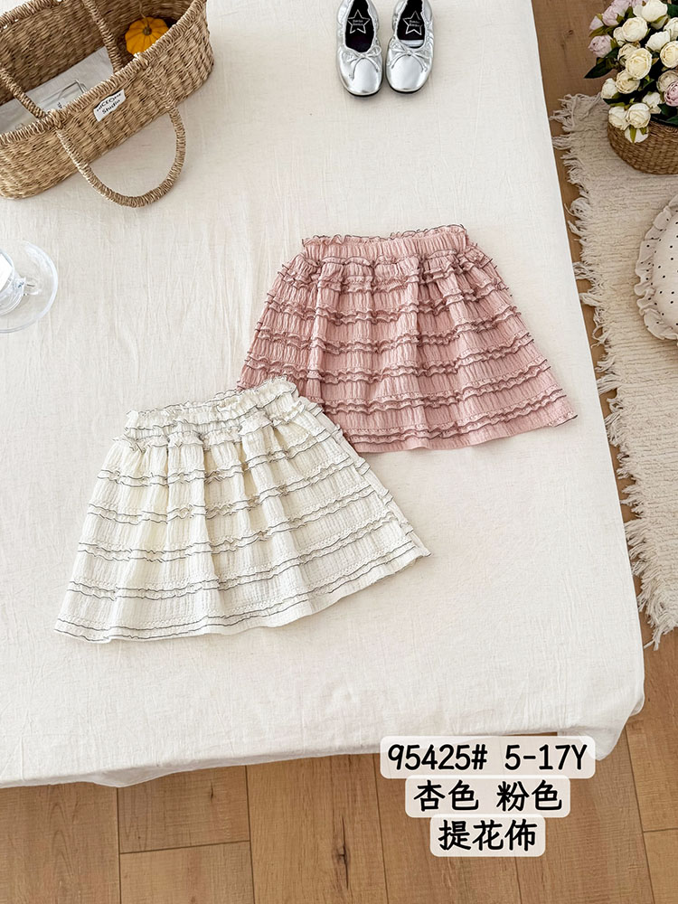 小女童 緹花蕾絲短裙/褲裙(內拼接安全褲) [95425] RQ POLO 小童 5-17碼 春夏童裝 緹花紋波紋泡泡布