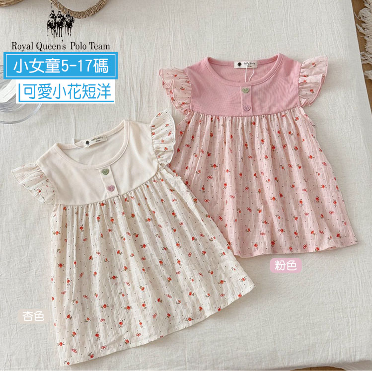 小女童 小碎花短洋上衣 5-17碼 [95395] RQ POLO 小童 春夏童裝 布料柔軟 荷葉袖 內搭褲 短洋裝