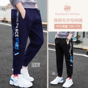 中大男童厚刷毛字母棉褲 運動褲 長褲 黑/寶藍 120-170 [J8255] RQ POLO 秋冬童裝 現貨