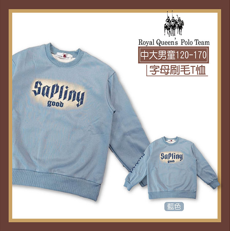 刷毛*中大男童 印刷毛線字母刷毛棉T恤【寶藍色】[66149] RQ POLO 秋冬童裝 中大童 120-170碼 搖粒絨