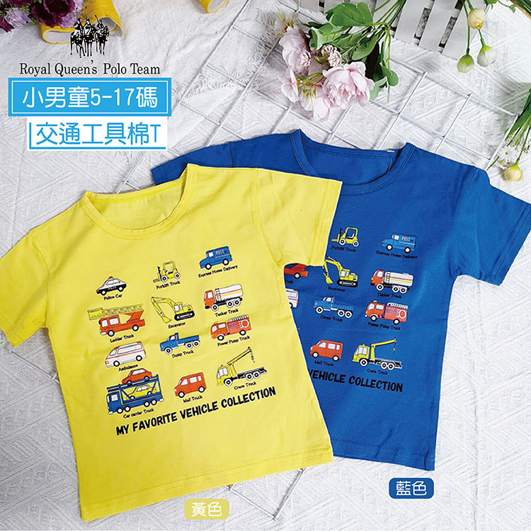 小男童 交通工具 短袖圓領T恤 5-17碼 [18093] RQ POLO 小童 春夏童裝 短袖上衣 消防車 警車工程車