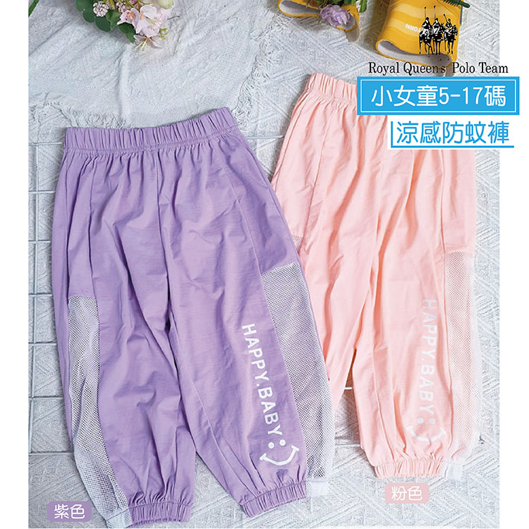 小女童 微笑字母涼感休閒長褲 5-17碼 [27052] R.Q. POLO 春夏童裝 冰絲網眼運動長褲 防蚊褲 薄長褲
