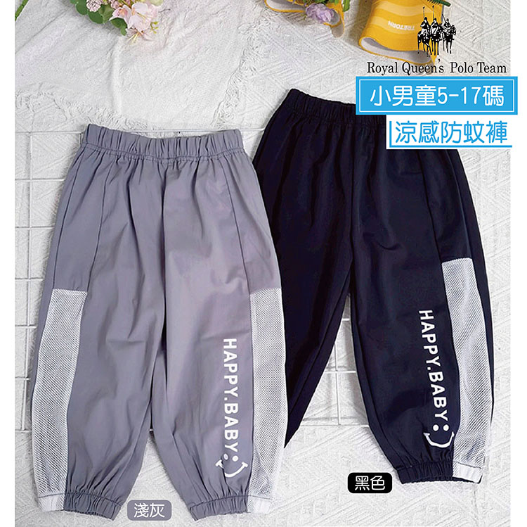 小男童 微笑字母涼感休閒長褲 5-17碼 [27054] R.Q. POLO 春夏童裝 冰絲 網眼 速乾 運動長褲 防蚊褲 薄長褲
