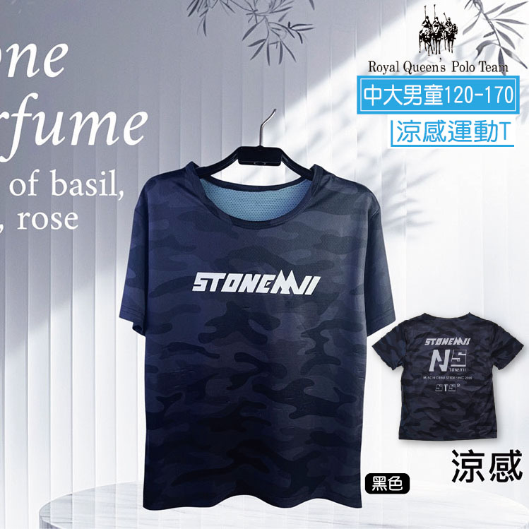 中大男童 涼感運動衫 吸溼排汗【黑色】120-170碼 [60747] RQ POLO 中大童 春夏童裝 字母短袖上衣 T恤 速乾