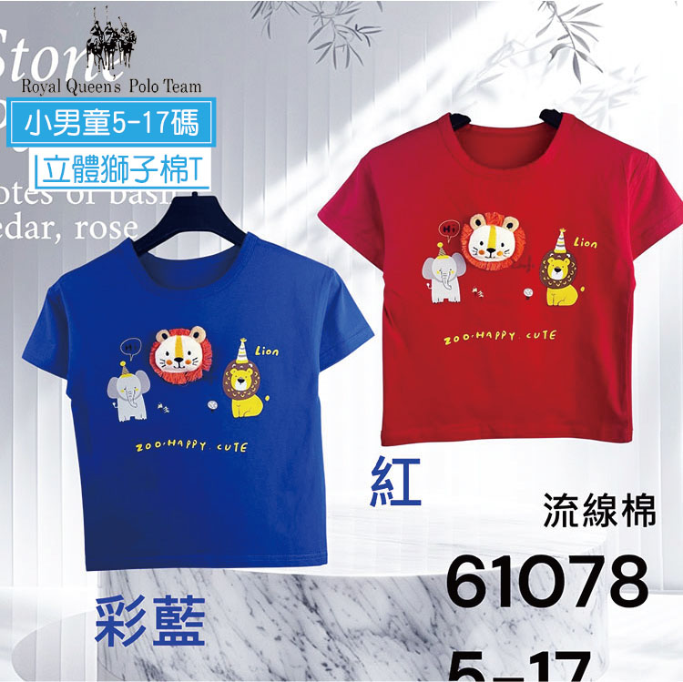小男童 立體獅子短袖圓領T恤 5-17碼 [61078] RQ POLO 小童 春夏童裝 短袖上衣 大象 動物 蘑菇