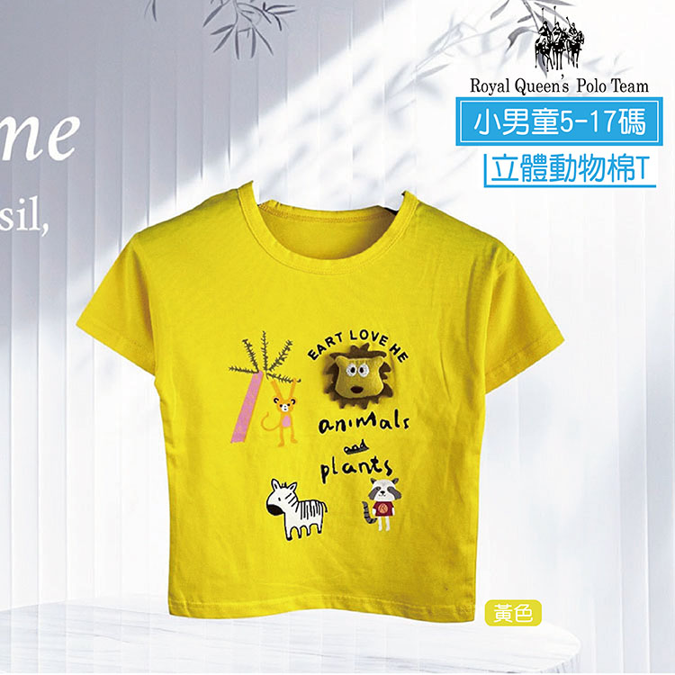 小男童 立體動物短袖圓領T恤 5-17碼 [61081] RQ POLO 小童 春夏童裝 短袖上衣 獅子 斑馬