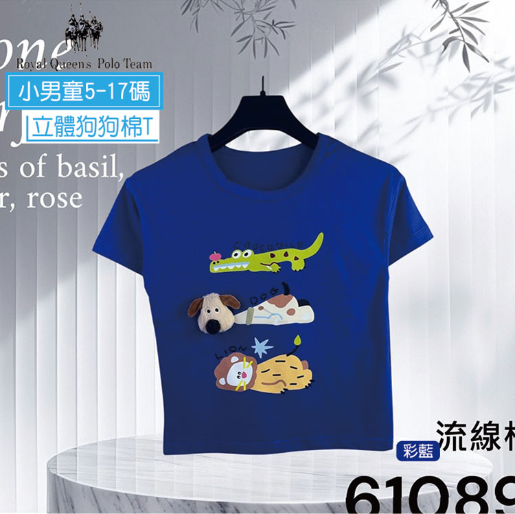 小男童 立體狗狗短袖圓領T恤 5-17碼 [61089] RQ POLO 小童 春夏童裝 短袖上衣 獅子 鱷魚 小狗