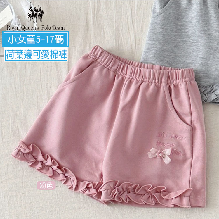 小女童 下擺荷葉邊雙口袋棉質短褲 5-17碼 [95357] RQ POLO 春夏童裝 運動褲 棉褲 棉短褲 休閒褲