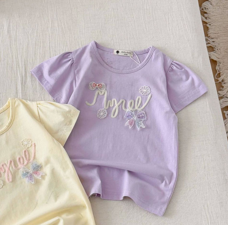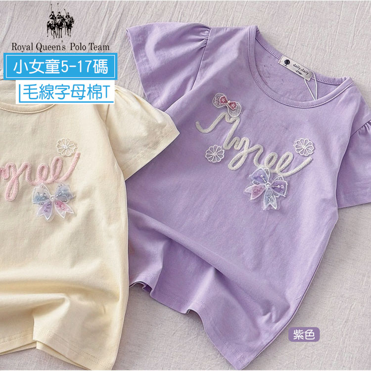 小女童 毛線字母短袖棉T恤 5-17碼 [95391] RQ POLO 小童 春夏童裝 短袖上衣 立體蝴蝶結