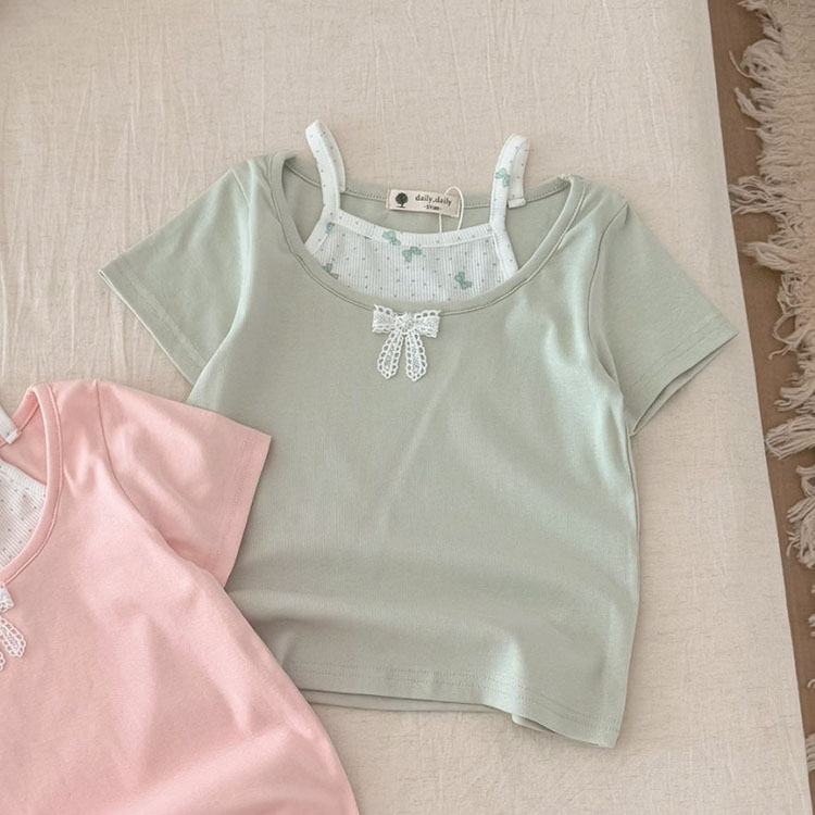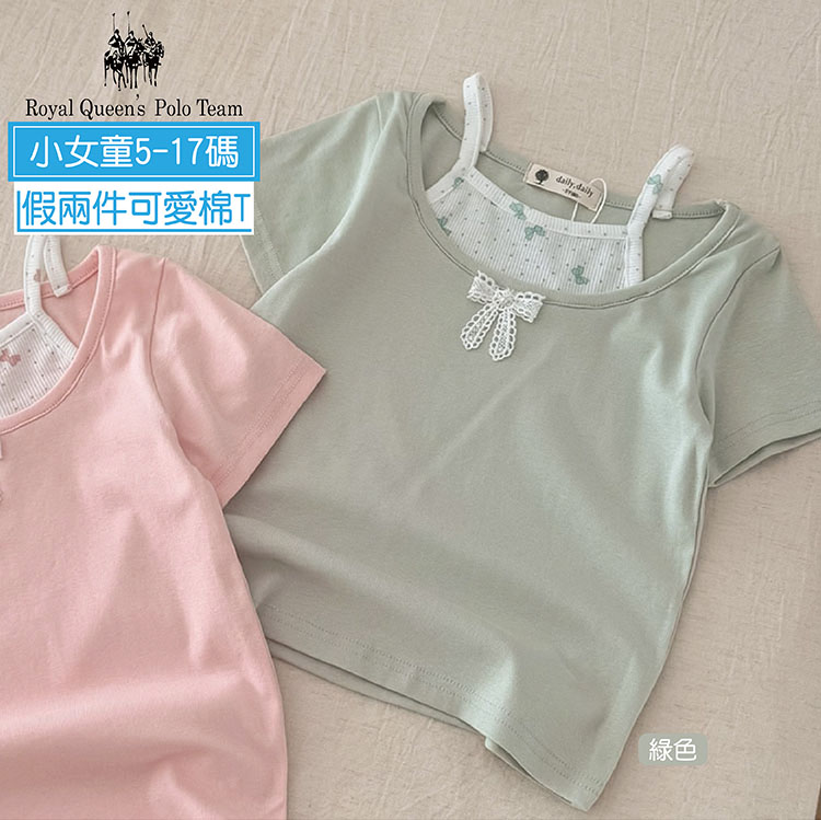 小女童 假兩件細肩可愛蝴蝶結短袖圓領T恤 5-17碼 [95459] RQ POLO 小童 春夏童裝 小清新 優雅 浪漫