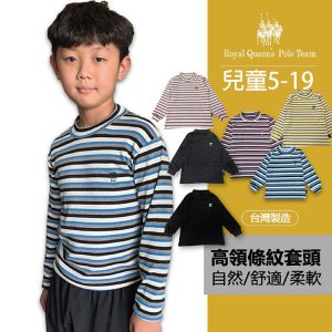 RQ POLO 小童秋冬款綠色條紋針織上衣
